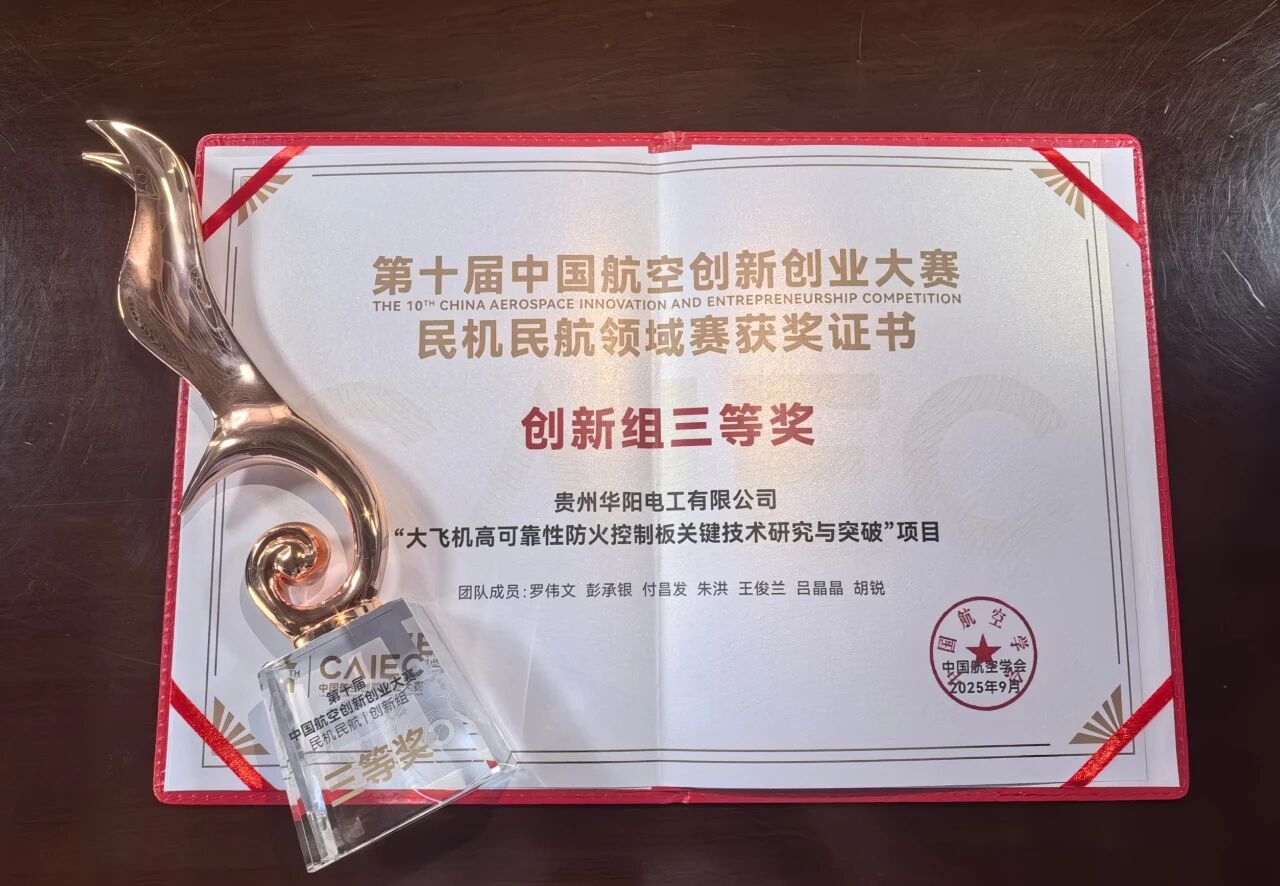 9月18日,在第十屆中國航空創(chuàng)新創(chuàng)業(yè)大賽“心在智造+民機(jī)民航”領(lǐng)域賽中,華陽電工憑借《大飛機(jī)高可靠性防火控制板關(guān)鍵技術(shù)研究與突破》項目榮獲創(chuàng)新組三等獎。本次大賽由中國航空學(xué)會、安順市人民政府、中國航空工業(yè)集團(tuán)有限公司、中國航空發(fā)動機(jī)集團(tuán)有限公司、中國商用飛機(jī)有限責(zé)任公司、中國國新控股有限責(zé)任公司、中國國際金融股份有限公司、中國航空航天工具協(xié)會聯(lián)合主辦。